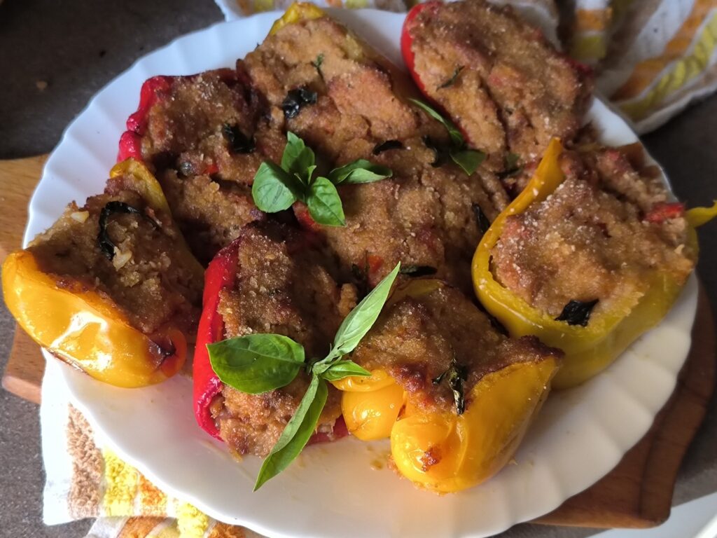 Peperoni ripieni di tonno e patate in friggitrice ad aria, un piatto sfizioso e leggero,...
