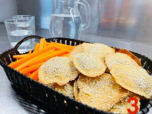 Servile fredde, accompagnate da cruditè di verdure e salsine.