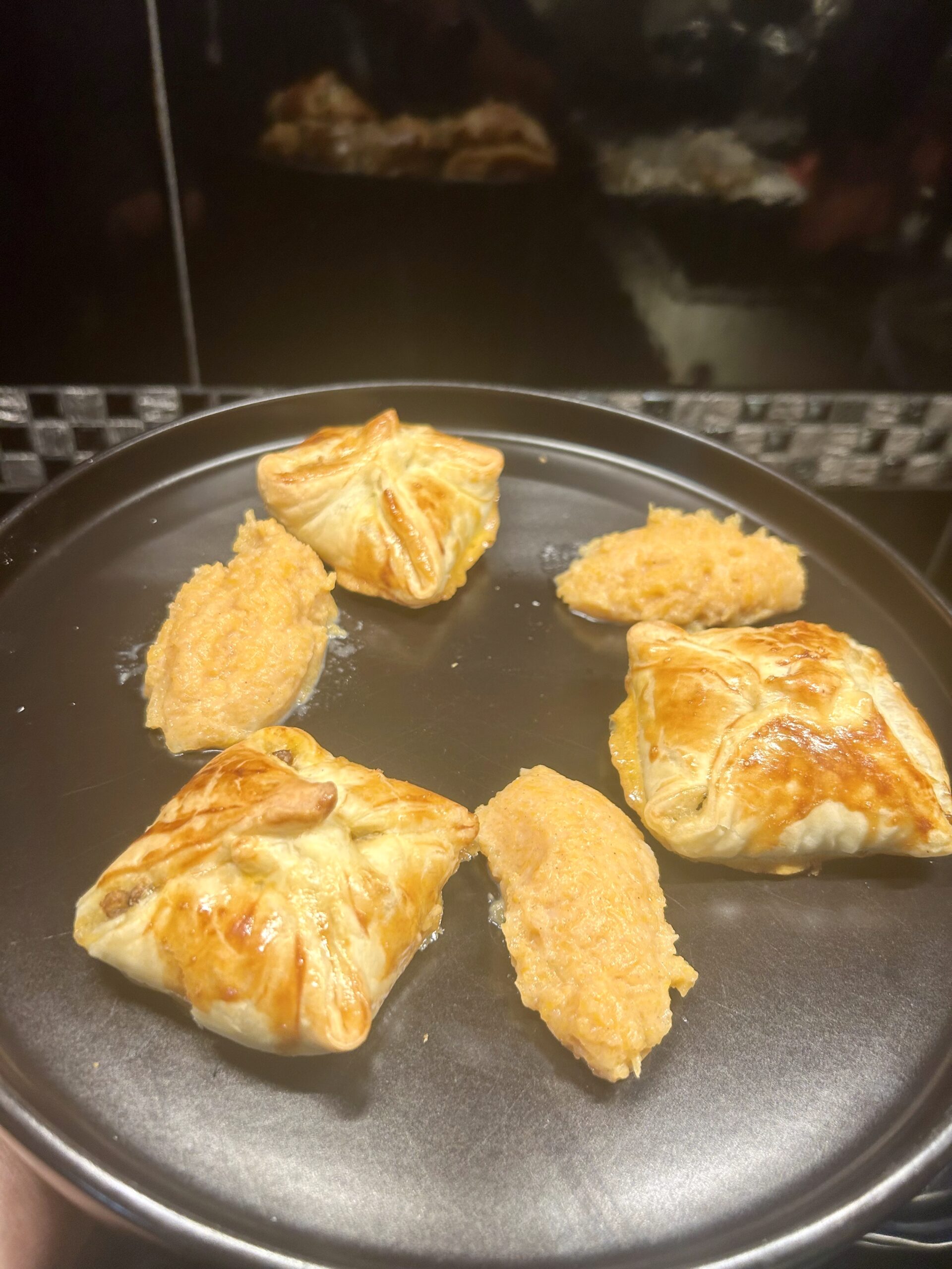 Spennellate con il rosso d’uovo e infornate su una leccarda coperta di carta forno per almeno 15 minuti a 190 gradi.