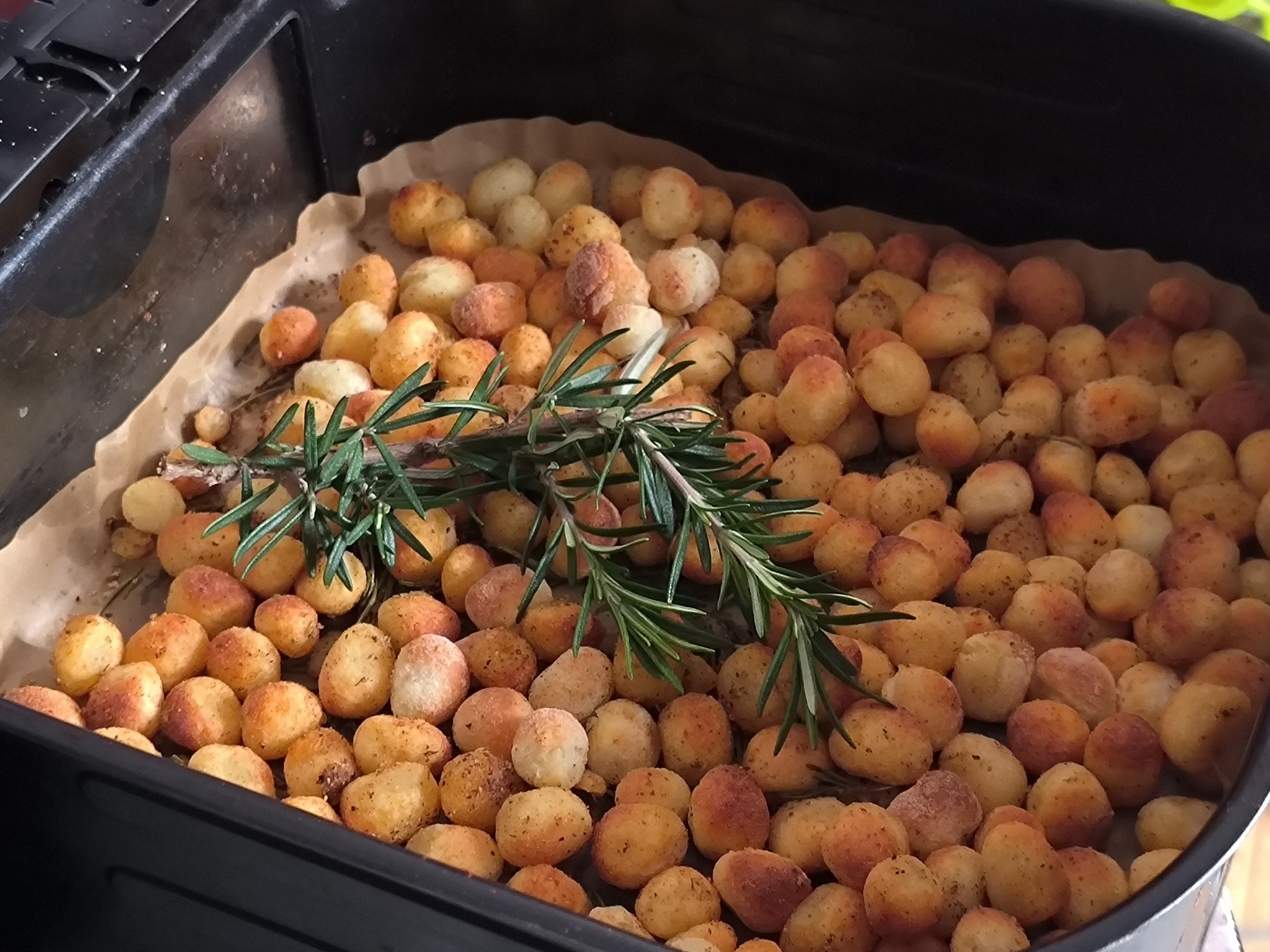 Si tratta dei semplicissimi gnocchetti freschi di patate che trovate in tutti i supermercati che, se cotti in friggitrice ad aria, diventano croccanti come le patatine fritte. Una ricetta facile e veloce, soprattutto quando non avete molto tempo a disposizione e volete portare in tavola qualcosa di diverso.