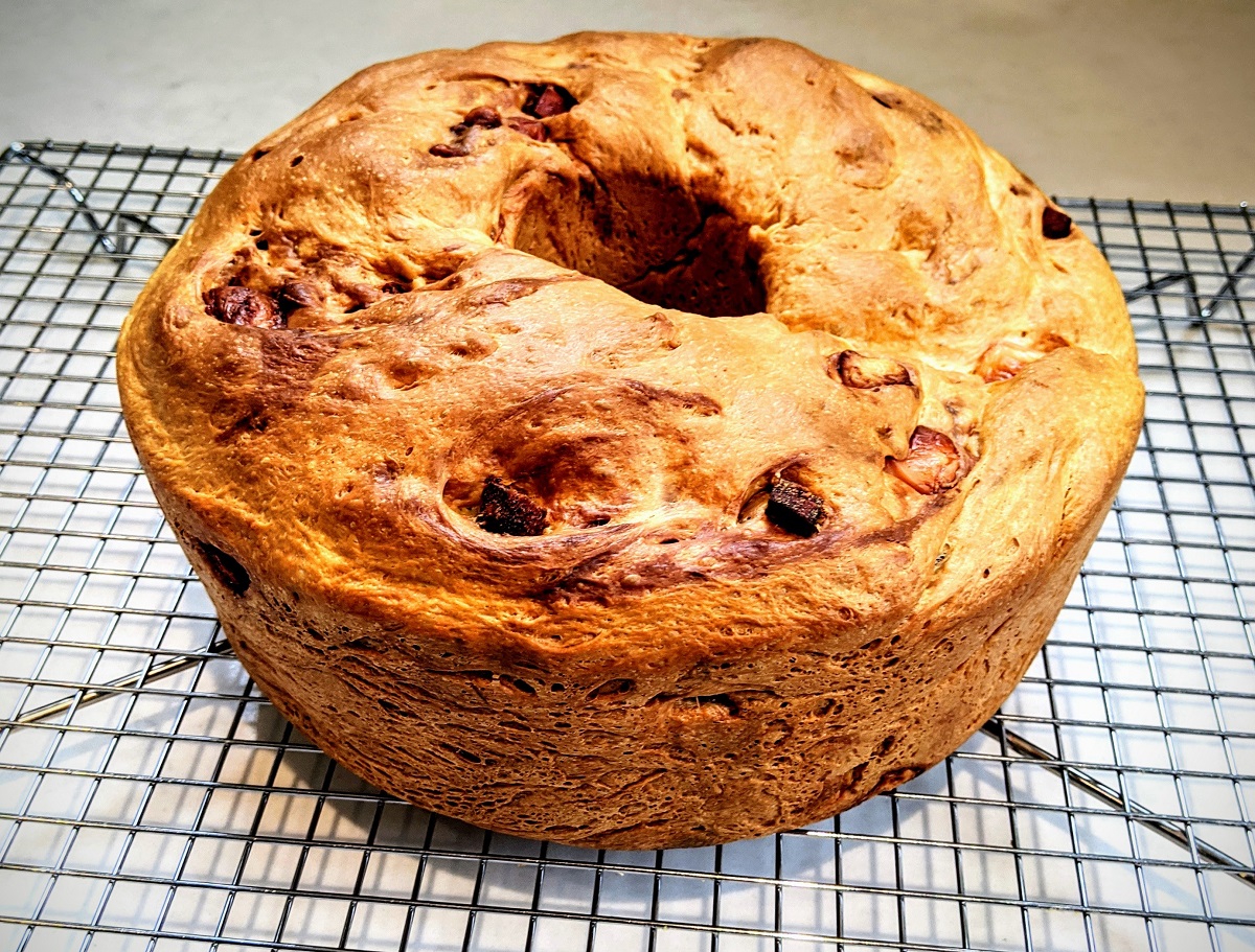Spostandoci verso l’Umbria e le Marche, il panorama cambia e il lievitato si fa più slanciato e verticale. La Torta di Pasqua, o Crescia, si presenta con una forma alta, simile a quella di un panettone, e una consistenza che ricorda un soffice soufflé di pane. Qui il protagonista assoluto è il formaggio: un mix sapiente di pecorino stagionato e parmigiano, a cui spesso si aggiungono cubetti di formaggio fresco che, sciogliendosi, creano delle piccole “caverne” di piacere all’interno della mollica. A differenza del Casatiello, la Torta di Pasqua non contiene salumi nell’impasto (nella sua versione più ortodossa), perché la sua funzione storica è quella di accompagnare i salumi del territorio. È il compagno d’elezione per il salame corallina o per il capocollo, serviti durante la tradizionale colazione pasquale insieme a un bicchiere di vino rosso o a un uovo sodo. La sua forza risiede nella capacità di esaltare ciò che ha accanto, offrendo una nota aromatica intensa data dalla lunga lievitazione e dalla grinta del formaggio fuso.