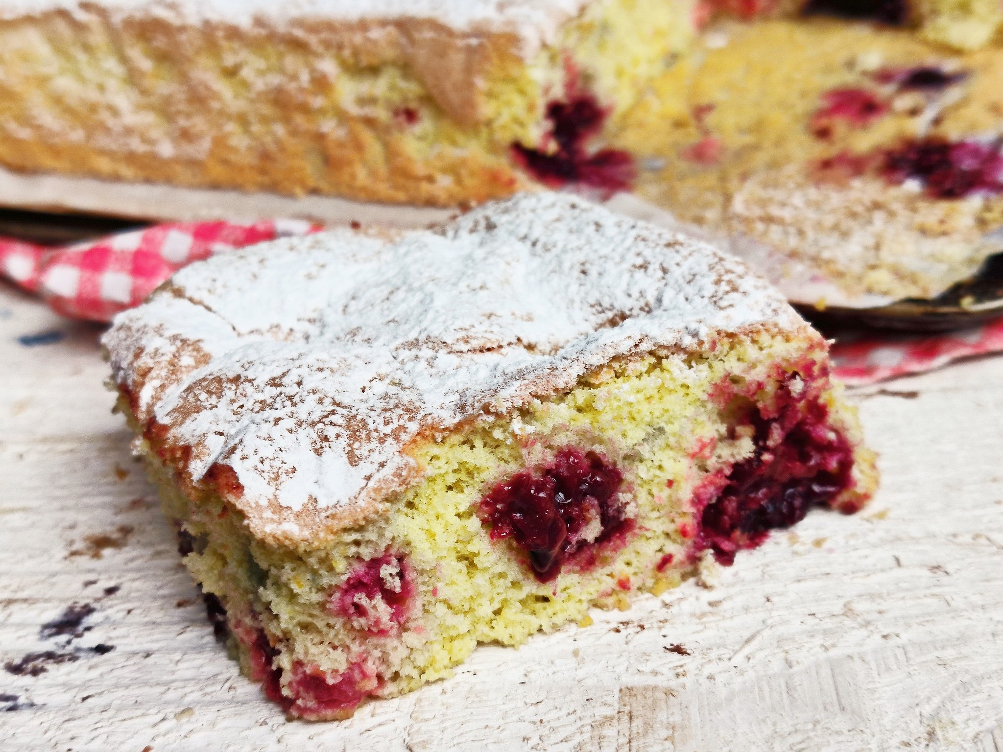 Per fare questa torta soffice io ho usato i lamponi e i mirtilli freschi, ma tu puoi usare la frutta che preferisci; se vuoi una versione più golosa puoi aggiungere dei pezzi di cioccolato.